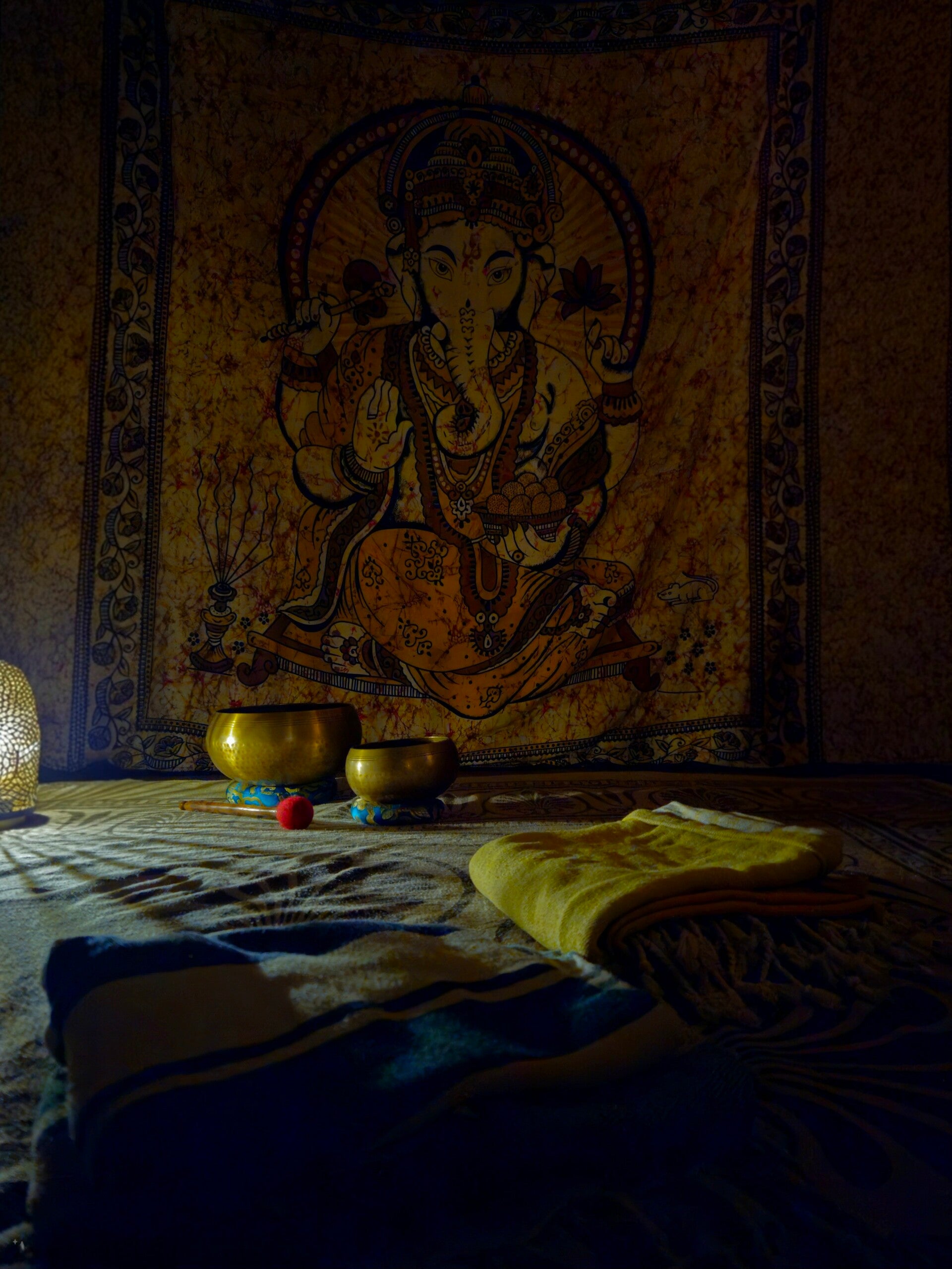 Mijn energetische massage maar dan met een vleugje tantra, klankschalen, drumklanken, een veertje en....